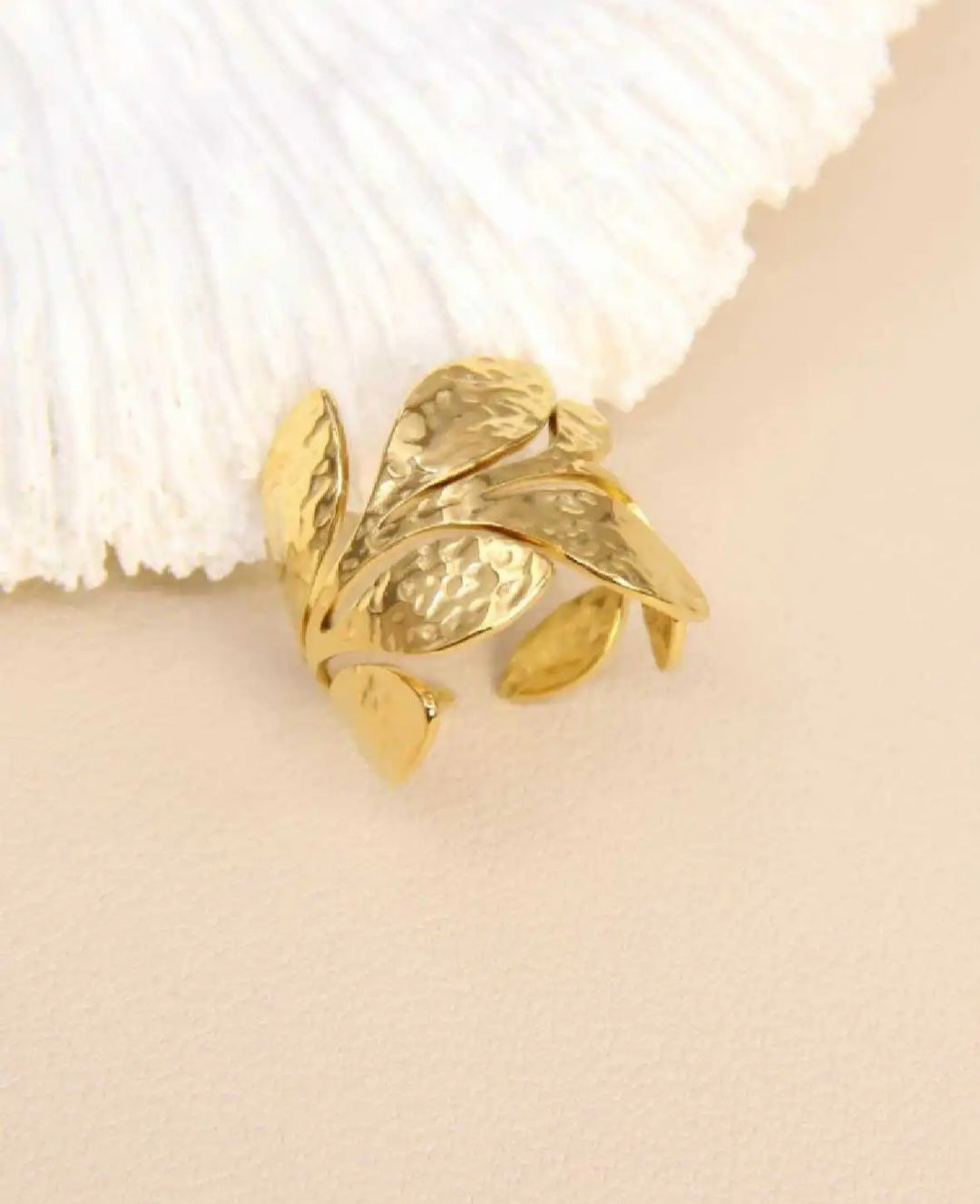 Apportez une touche de raffinement et de nature à votre style avec cette bague feuille en acier inoxydable.