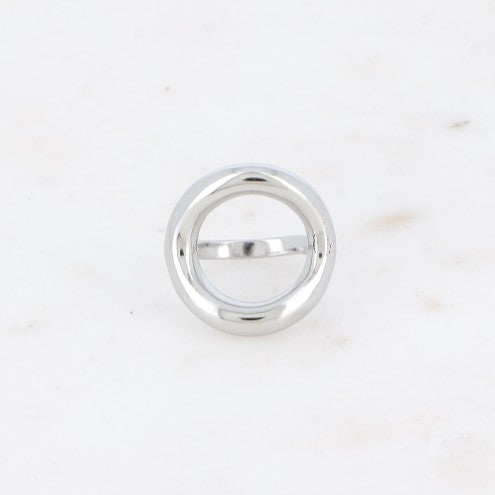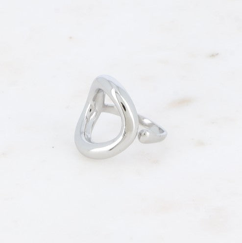 Bague en acier inoxydable composée d'une forme ovale ajourée.