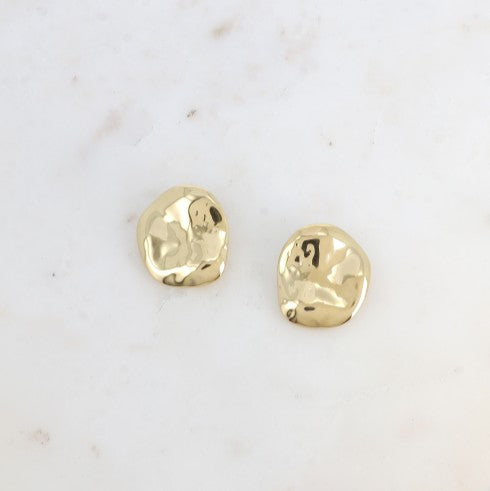Boucles d'oreilles à puce en acier inoxydable composées d'une pièce légèrement martelée.