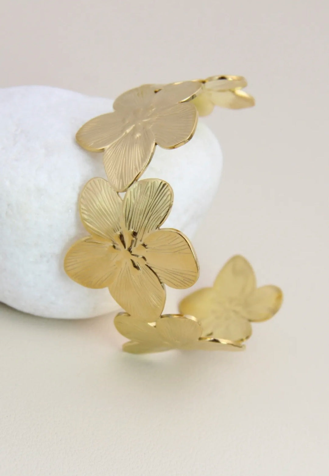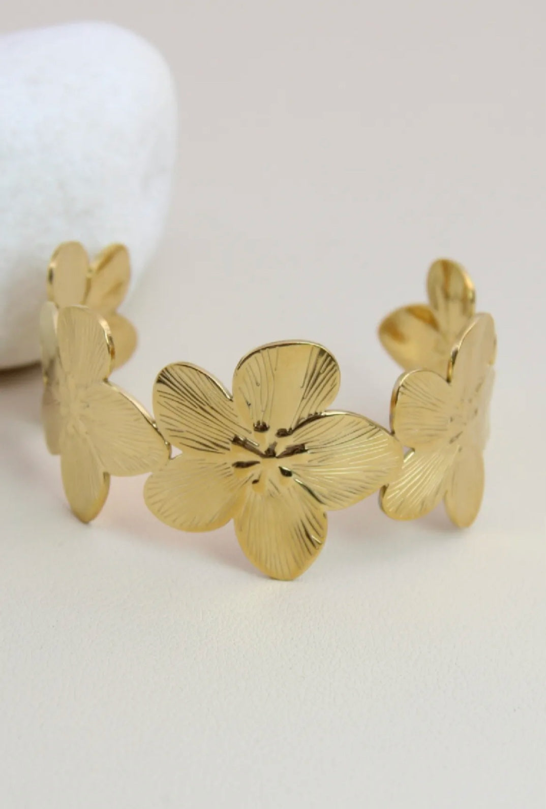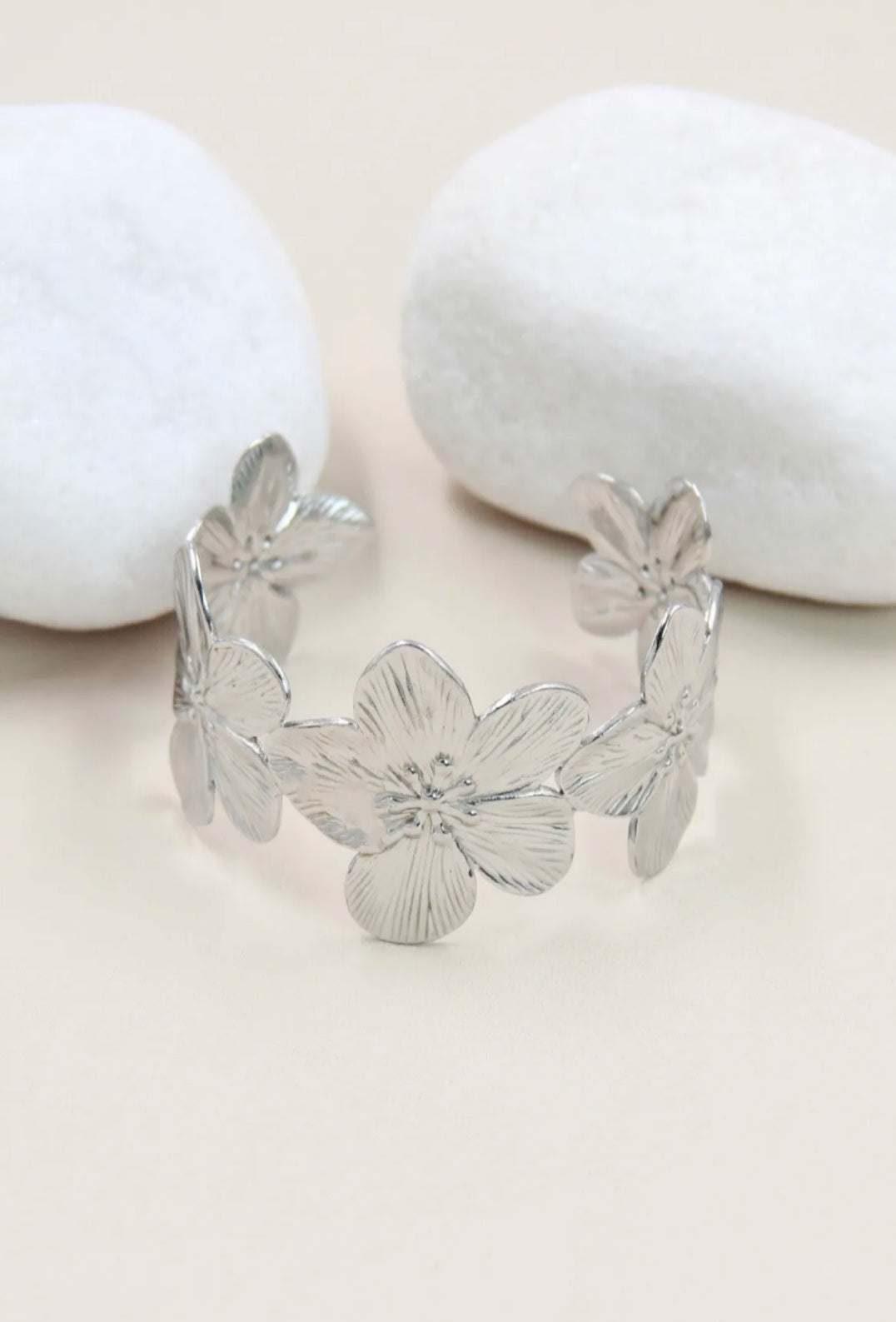 Bracelet jonc fleur jonc ajustable en acier inoxydable.
