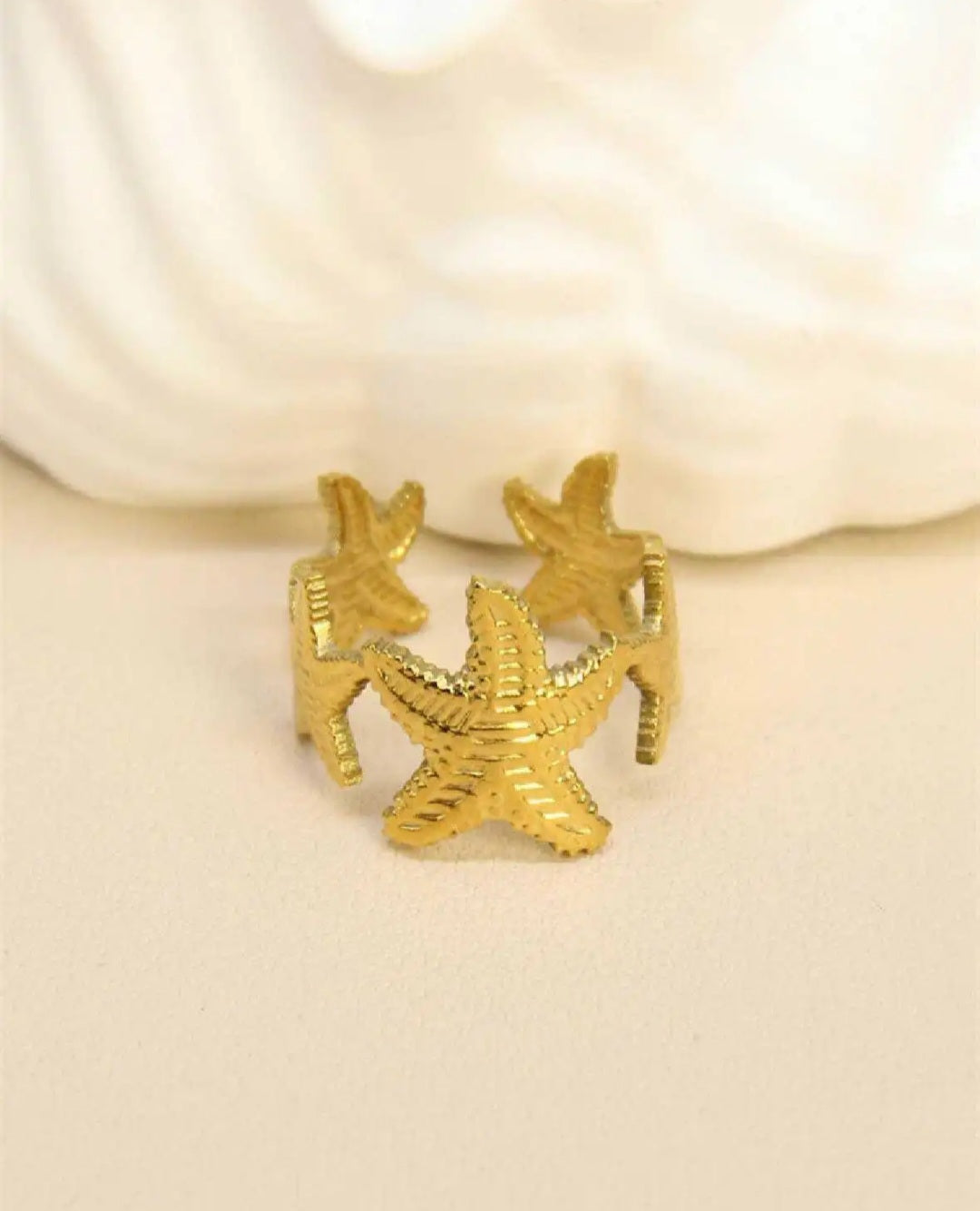 Plongez dans l'univers marin avec cette bague étoile de mer en acier inoxydable.