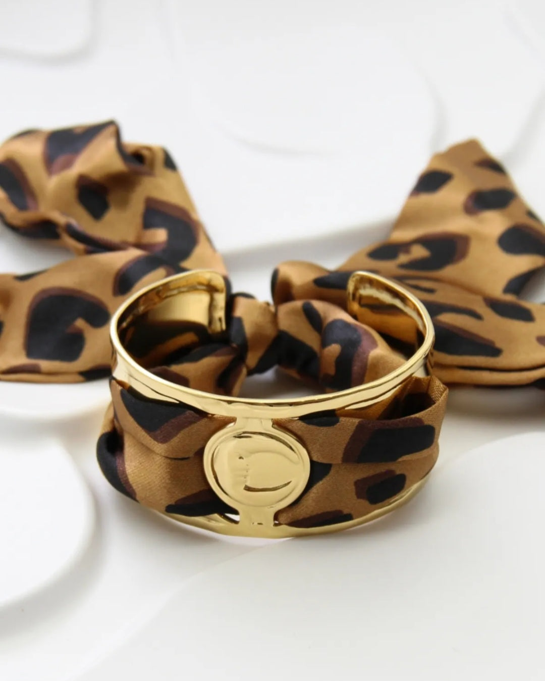 Le bracelet Téora allie mystère et élégance dans un design tendance. En acier inoxydable doré, il est sublimé par un ruban en tissu imprimé léopard qui apporte une touche audacieuse et moderne. Son médaillon gravé en forme de lune ajoute une note poétique et symbolique, idéale pour celles qui aiment les bijoux porteurs de sens.