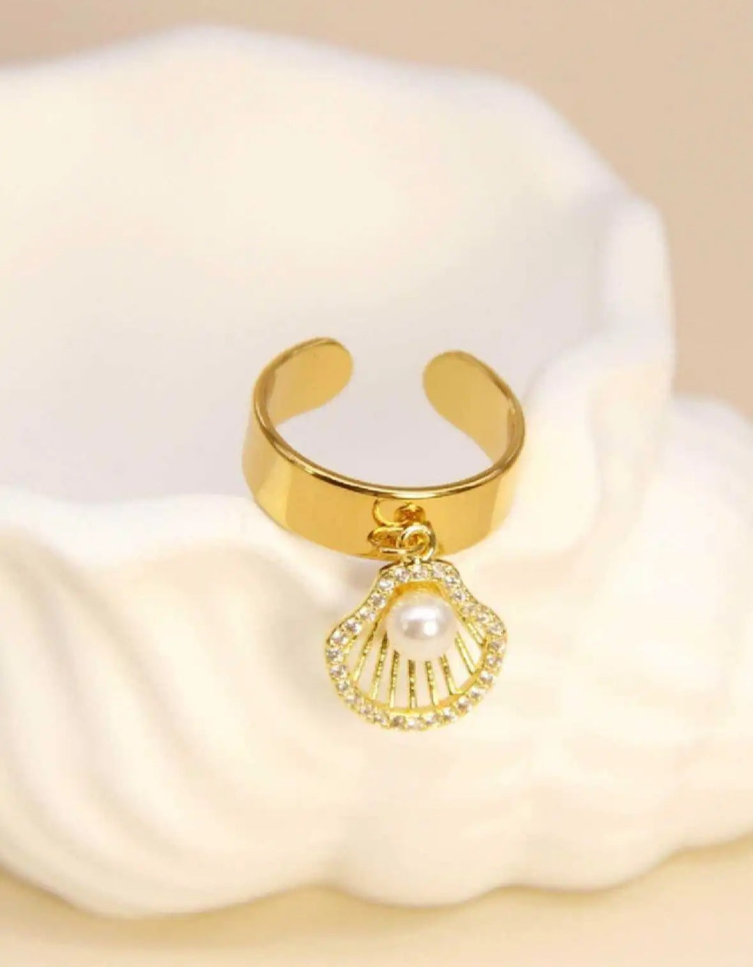 Elle est ornée d'une breloque en forme de coquillage sertie de cristaux scintillants et d'une perle délicate.