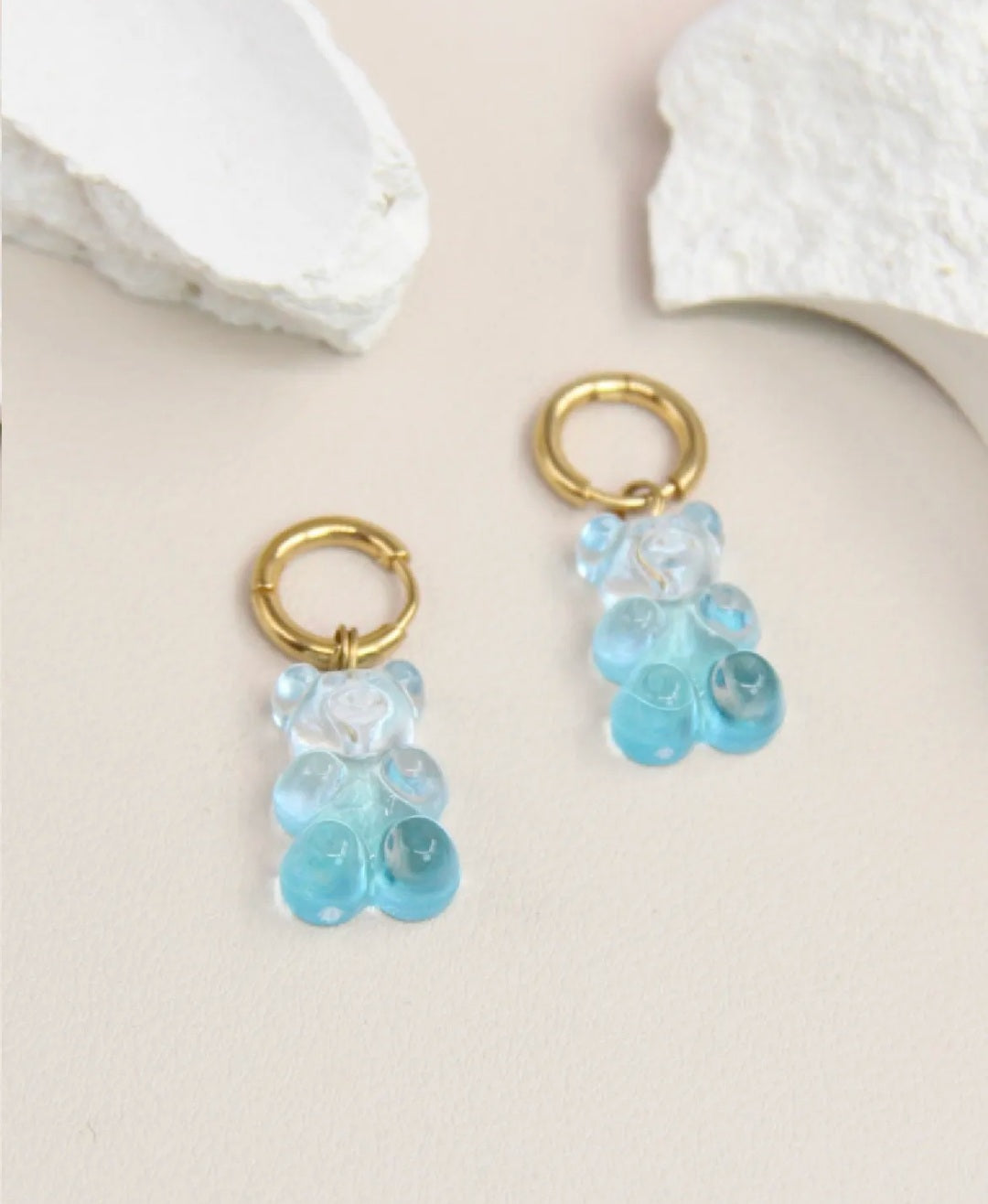Boucles d'oreilles en acier inoxydable avec un petit nounours.